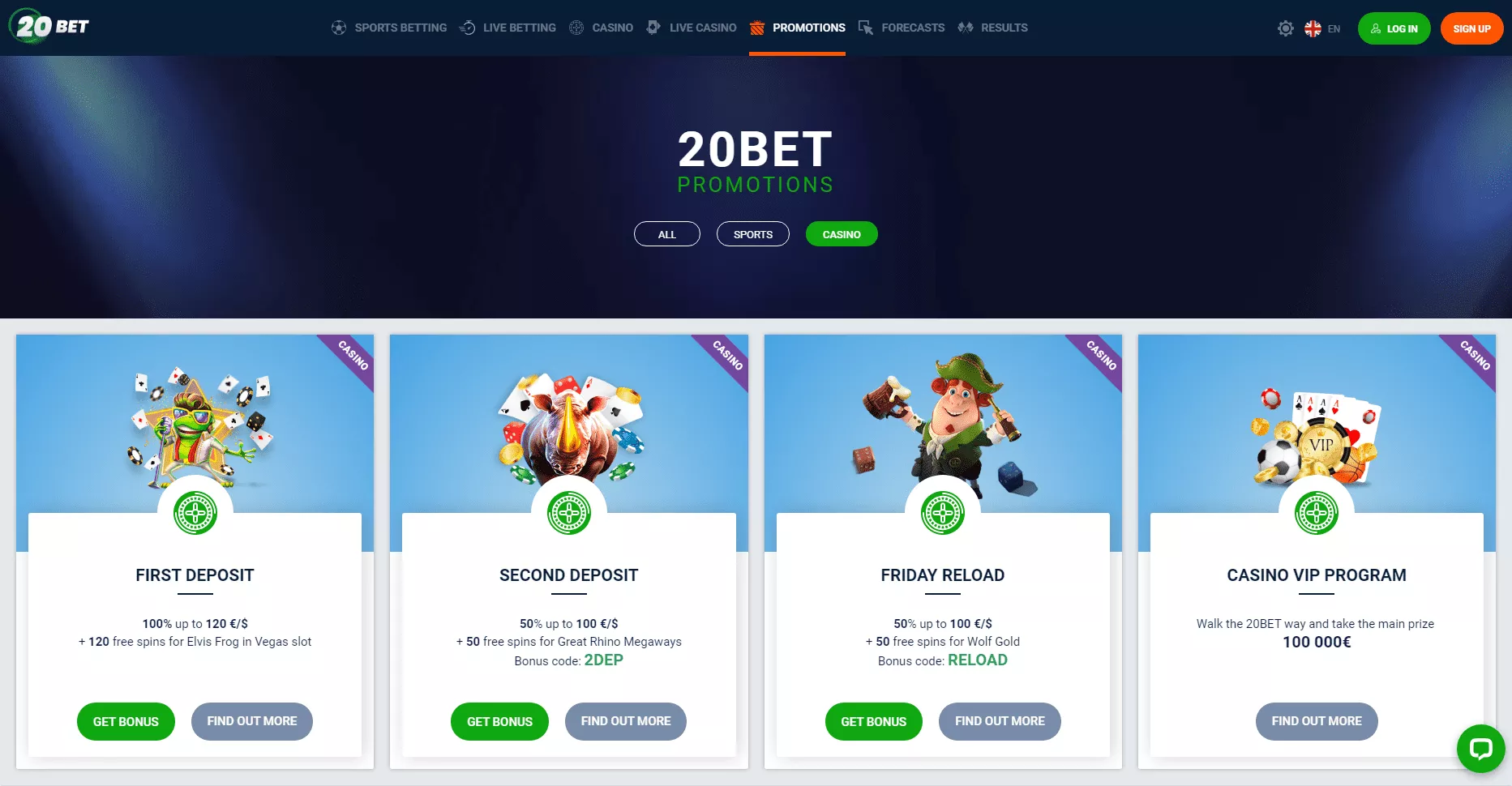 „Druga Wpłata” – mniejsza niż 20Bet Casino bonus powitalny, ale nadal jest to świetna opcja na dodatkowe pieniądze i 20Bet kasyno free spiny.