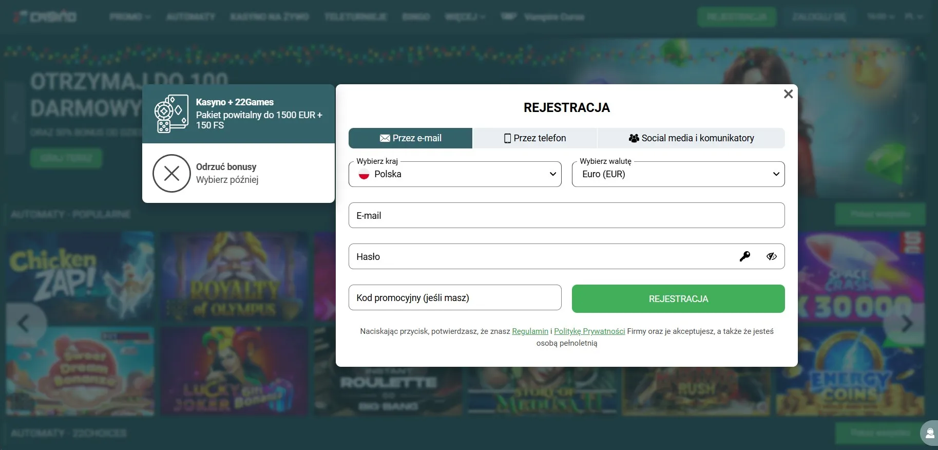 Wszystkie działania promocyjne są zgodne z prawem i nie kierują oferty do osób niepełnoletnich ani podatnych na zaburzenia psychiczne. Gracze są informowani o ryzyku hazardu i zachęcani do kontrolowania wydatków. Zarejestruj konto w 22Casino online, korzystając z bezpiecznych metod weryfikacji i wsparcia.