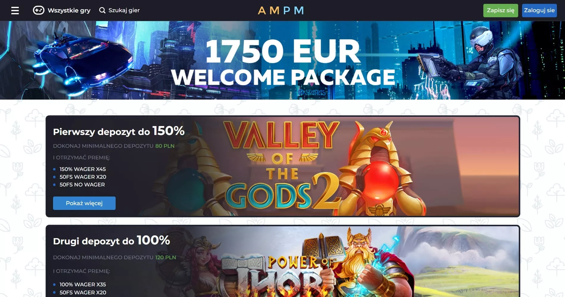 Platforma działa od 2022 roku i już teraz stanowi jedną z najbardziej dynamicznie rozwijających się stron wśród nowych kasyn online. Na stronie kasyna AMPM znajdziesz ponad 5000 gier, szeroki wybór dostawców oprogramowania, w tym najpopularniejszych producentów jak Pragmatic Play, oraz jedne z najbardziej hojnych promocji w branży.