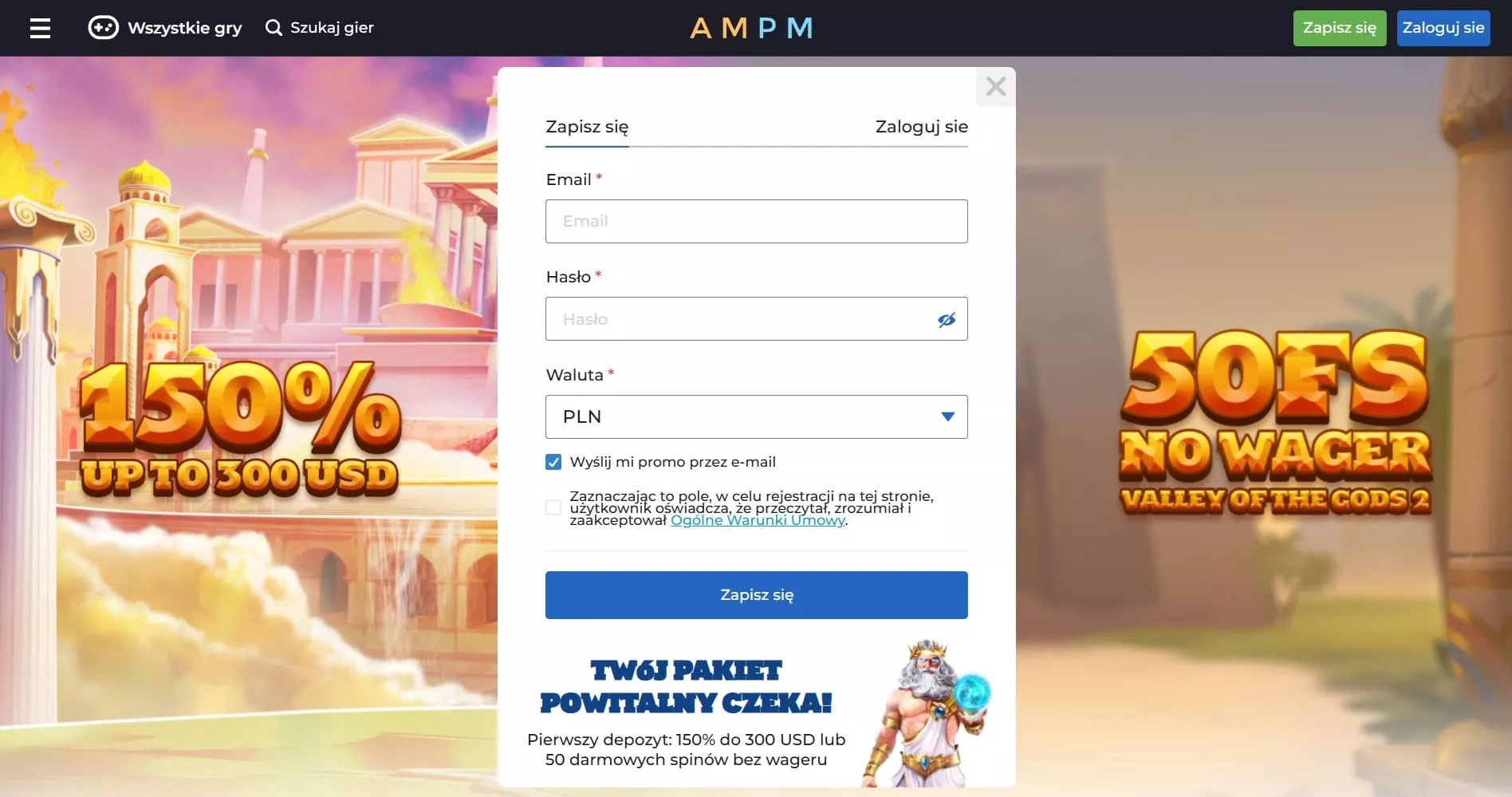 Aby uzyskać dostęp do wszystkich funkcji kasyna AMPM, konieczne jest utworzenie konta i przejście szybkiego procesu rejestracji.
