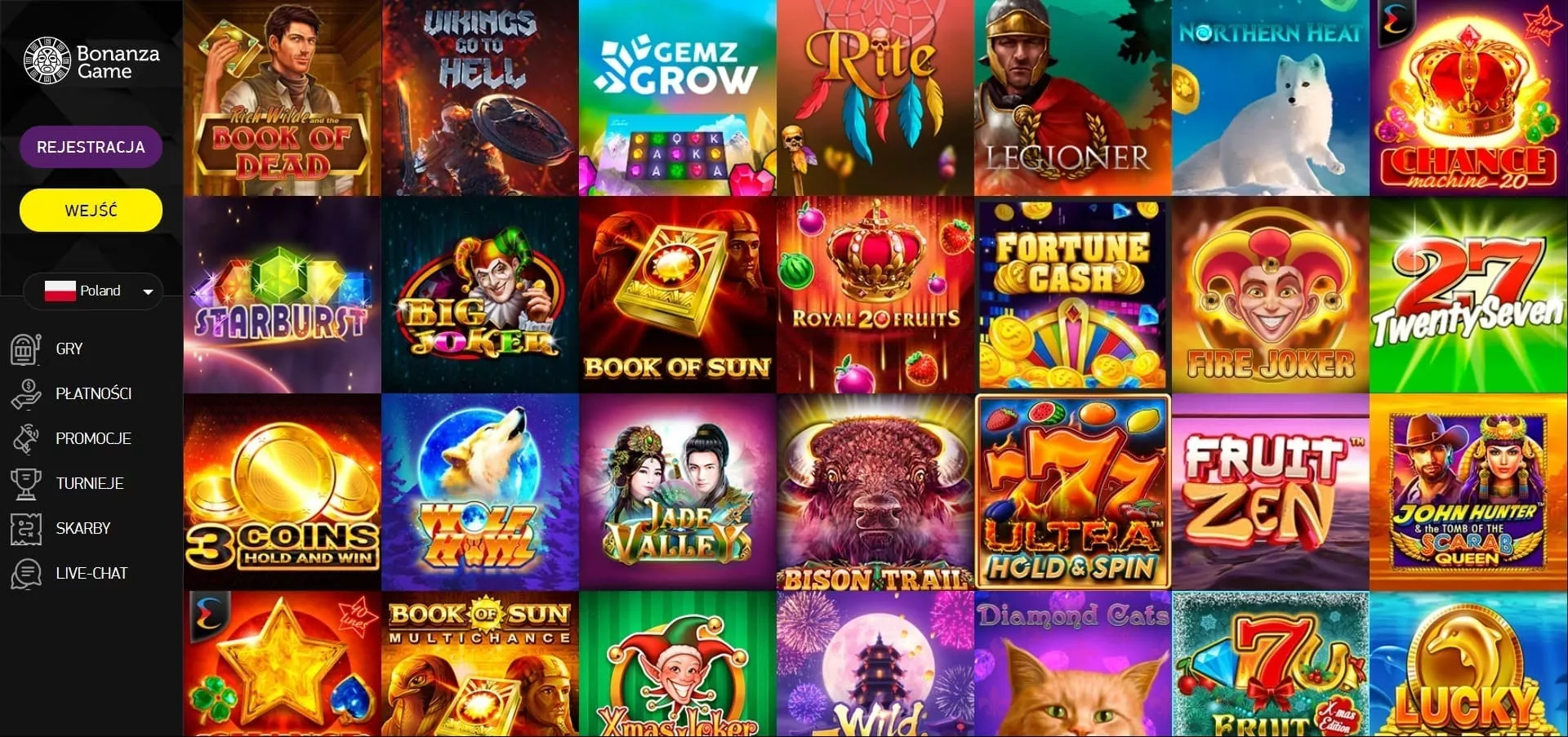 Jeśli chodzi o Bonanza casino najlepsze gry, to królują tutaj klasyczne automaty w stylu “owocówek”. Oprócz tego popularne są tu takie gry jak Claws vs. Paws, 300 Shields, Archangels, Adelia czy Lost Relics. Gracze mogą tu grać zarówno na wysokie jak i na niskie stawki, a dobra zabawa w hazard jest tu gwarantowana, dzięki wysokiej jakości gier dostarczanych przez markowych deweloperów. Nie ma tutaj niestety opcji gry Bonanza Casino bez wpłacania depozytu. W ofercie gier znajdziemy także opcje gier na automatach z progresywnym jackpotem.