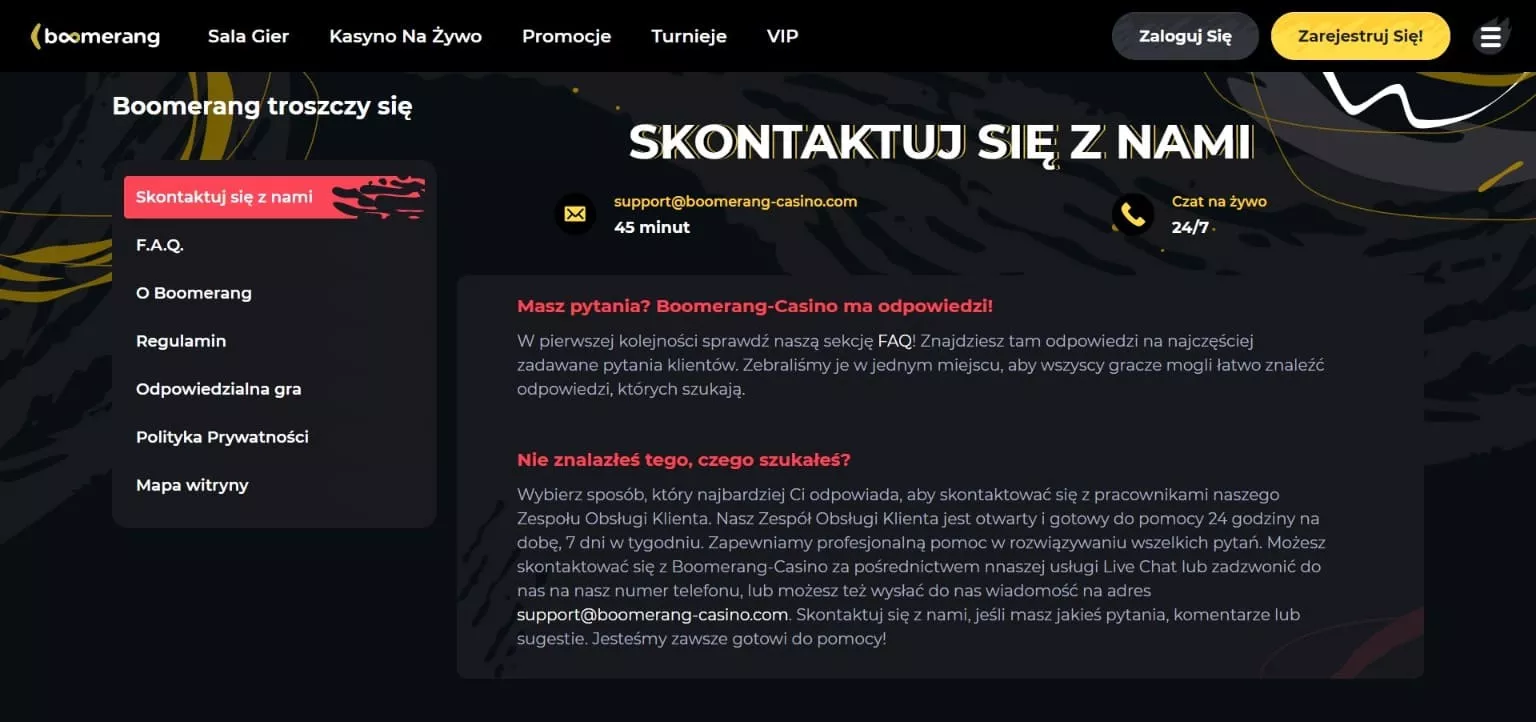 Boomerang Casino kontakt z obsługą klienta