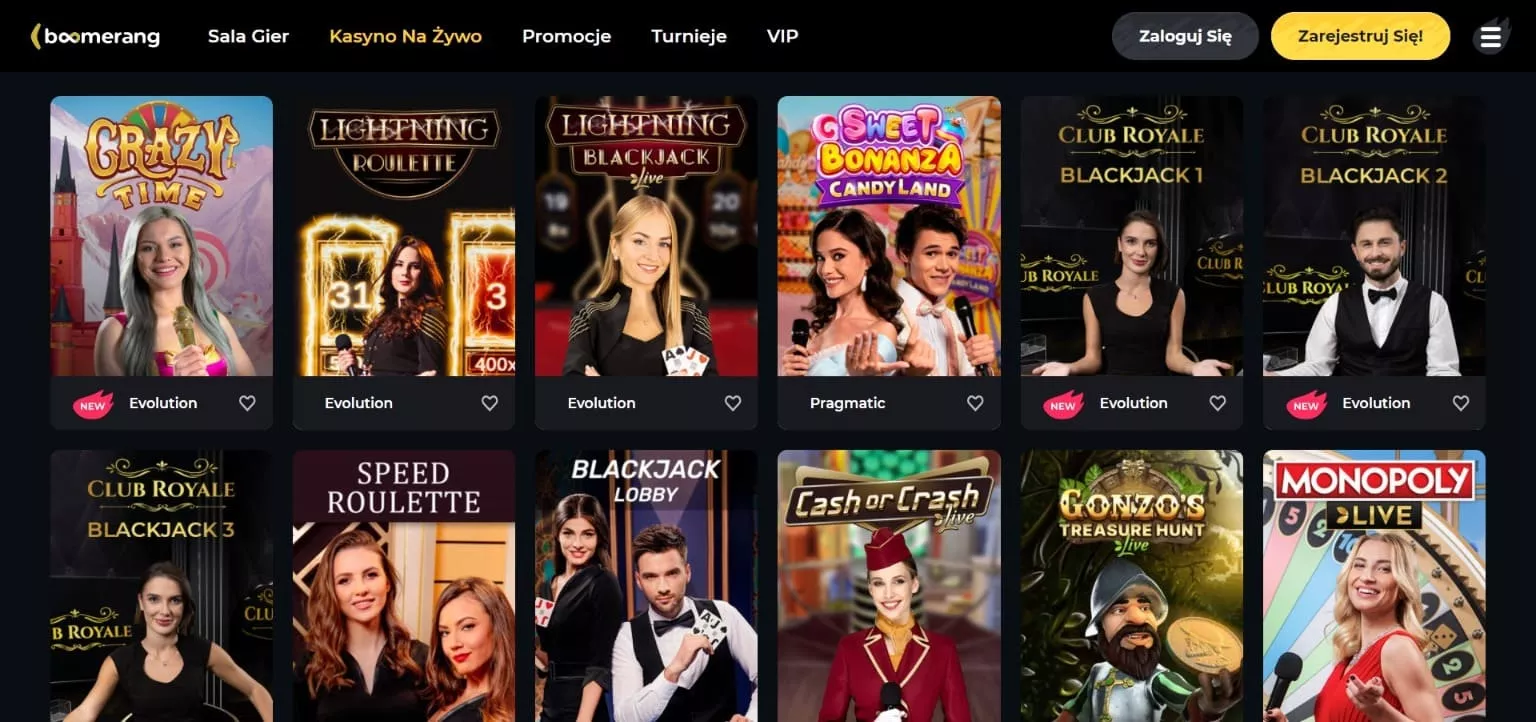 Gry Boomerang Casino: sloty, gry stołowe i kasyno na żywo