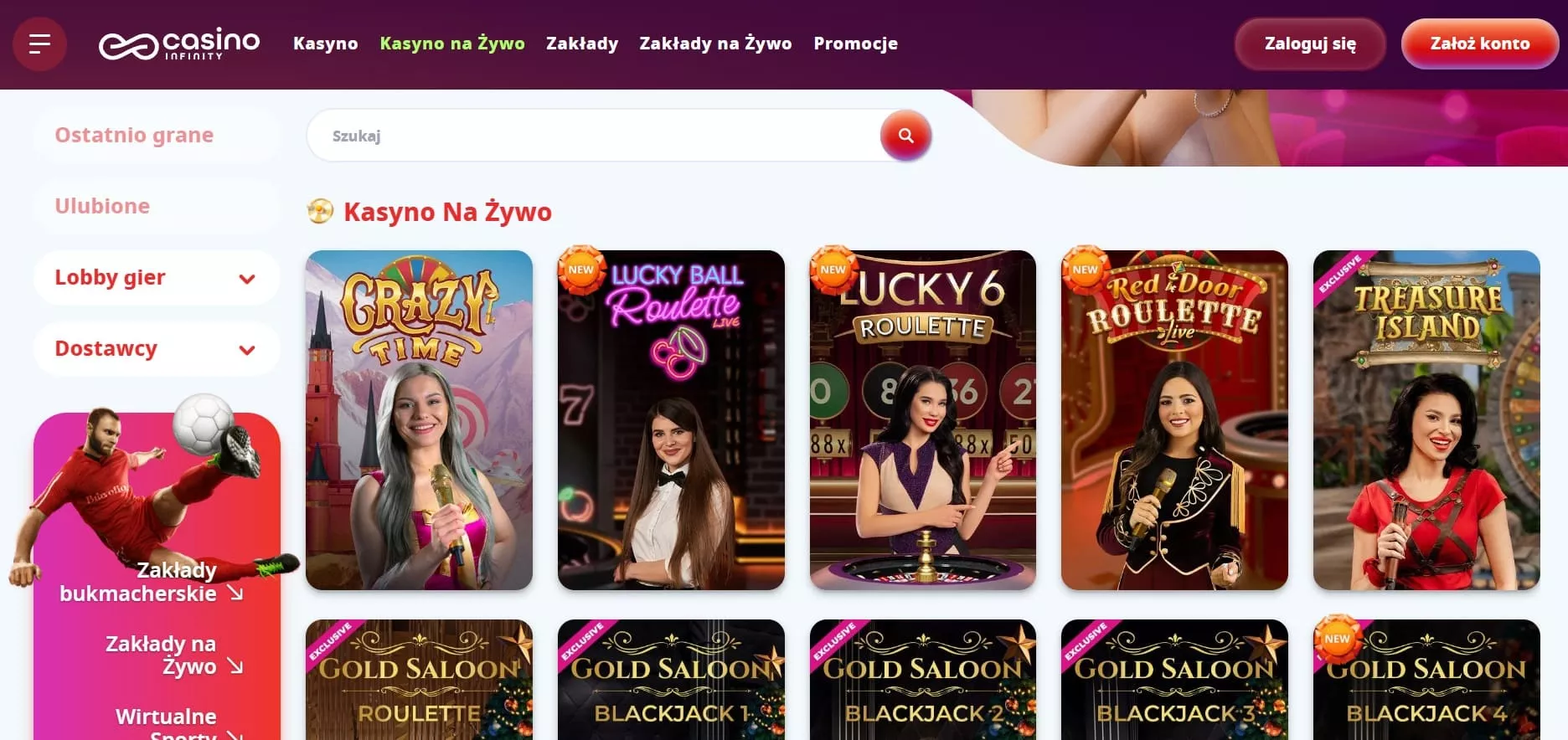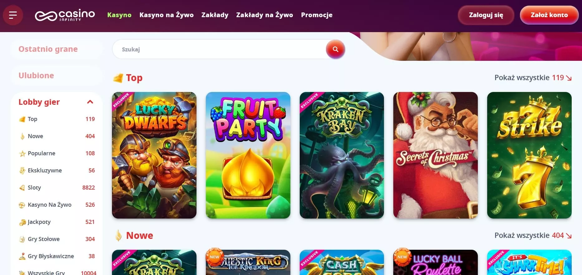 W online kasyno СasinoInfinity zabawa jest na wyciągnięcie ręki, dzięki niezwykle zróżnicowanej ofercie 8000 gier, które zaspokoją gusta każdego gracza. CasinoInfinity współpracuje z wieloma renomowanymi dostawcami oprogramowania, takimi jak Play’N Go czy Pragmatic Play, gwarantując wysoką jakość i różnorodność maszyn slotowych.