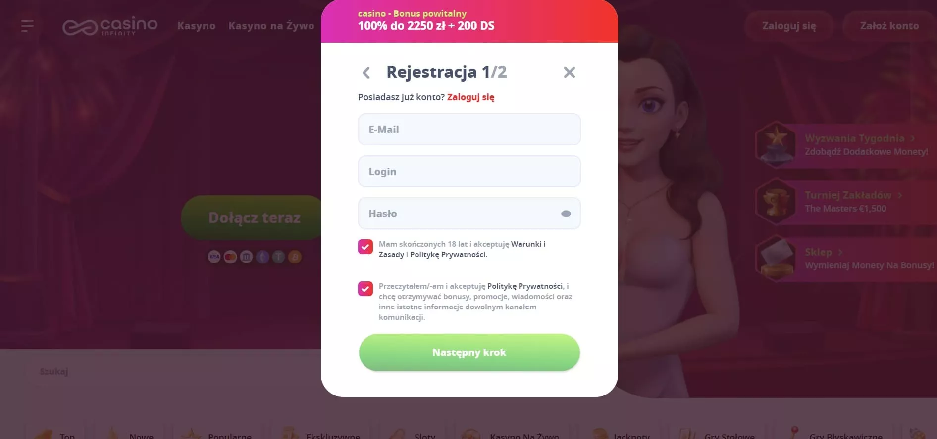 Jak wygląda login i rejestracja w kasynie online CasinoInfinity?