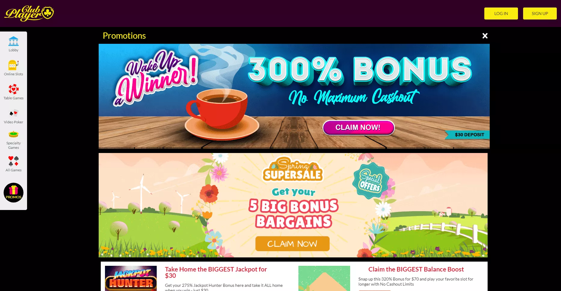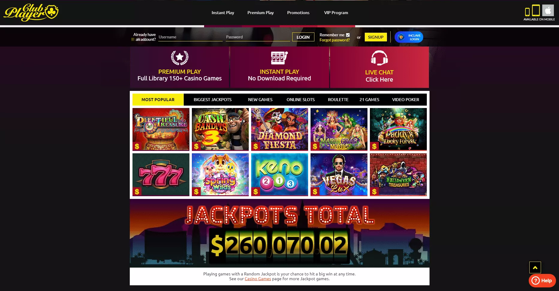 Club Player to kasyno, które lubi oferować codziennie nowe oferty swoim klientom, wyświetla tylko bieżącą ofertę na stronie internetowej.