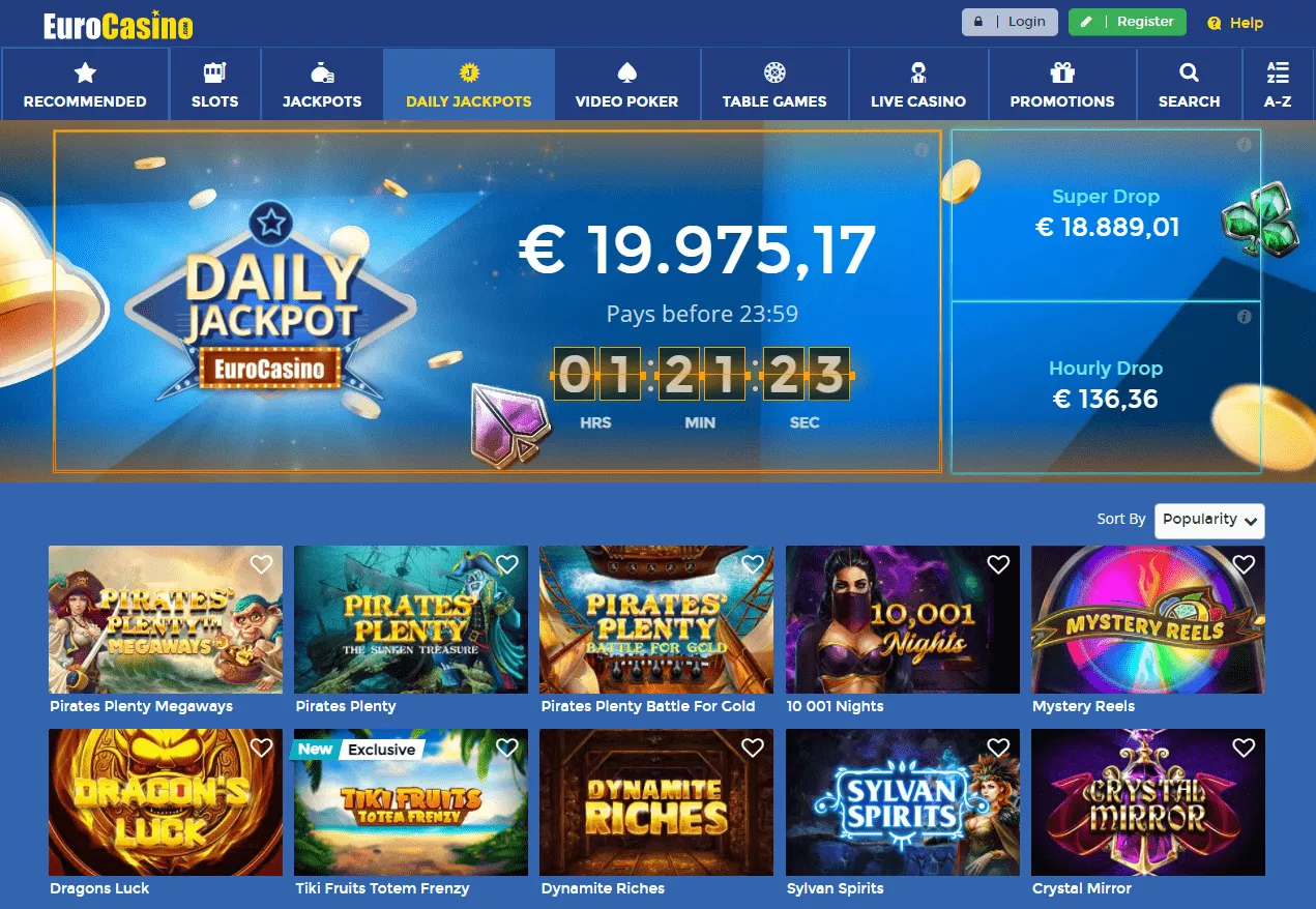 Nie ma żadnych limitów wypłat, chociaż obowiązują inne warunki, w tym ograniczenia CasinoEuro najlepsze gry, a także nie możesz ubiegać się o bonus powitalny, jeśli Twoja pierwsza wpłata została dokonana za pomocą Skrill lub Neteller.