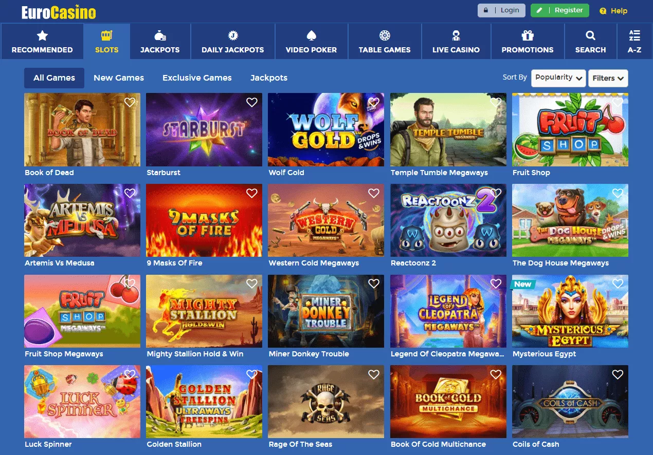 Obsługiwane przez Netent, Microgaming/Quickfire, IGT, Leander, Blueprint, Play’n Go, Yggdrasil, NYX, WMS, Evolution, Quickspin – Casino Euro ma prawie wszystko, czego szuka gracz. Wszystkie gry od tych wspaniałych producentów nie trzeba CasinoEuro download pobierać i można grać prosto w przeglądarce.