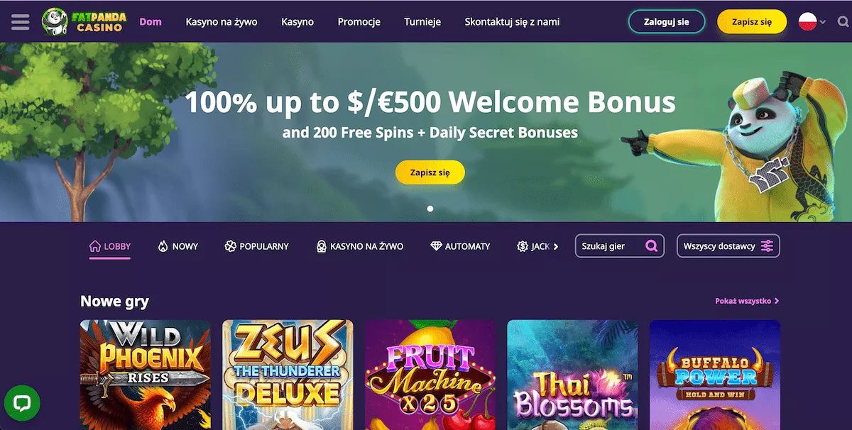 Kasyno FatPanda staje się popularnym wyborem w Polsce, oferując ponad 5000 automatów i ponad 400 gier z krupierem na żywo , co czyni ją świetną opcją dla graczy Z bonusem powitalnym w wysokości 2000 zł i 200 darmowymi spinami, ma na celu przyciągnięcie nowych użytkowników. Platforma jest bezpieczna i posiada licencję wydaną przez Curacao Gambling Authority.