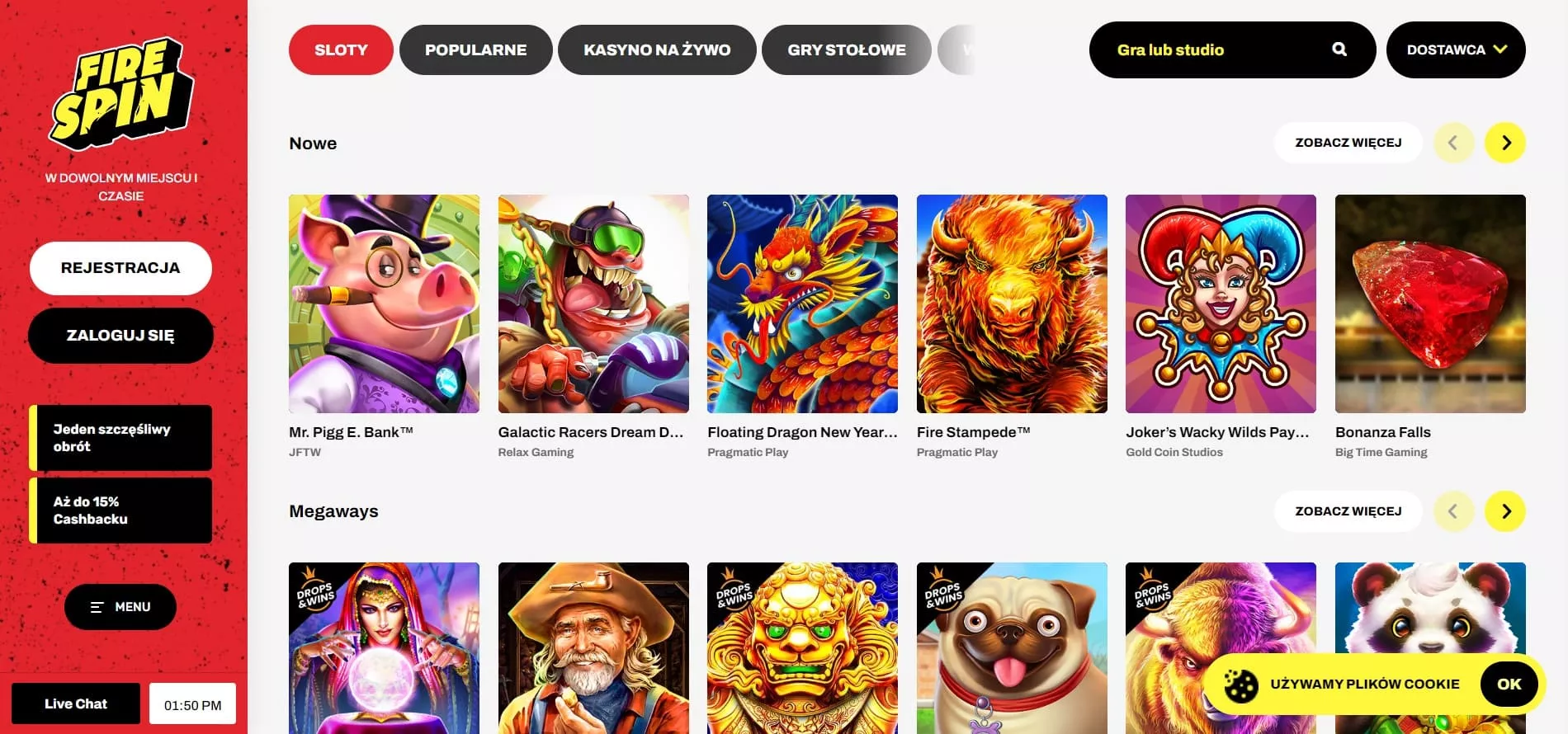 Tutejsza oferta została zaprojektowana w sposób, który obejmuje łącznie ponad 2000 odmiennych gier hazardowych. Gra udostępniana przez kasyno FireSpin gra online wiąże się także z propozycjami od topowych dostawców oprogramowania, jak Pragmatic Play, NetEnt czy Play’n GO. Oto kategorie gier dostępnych w serwisie: