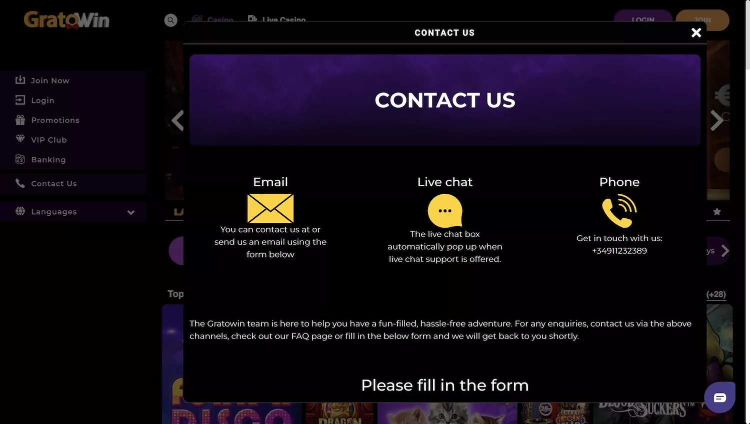 Casino Gratowin zapewnia swoim graczom wsparcie na wysokim poziomie, oferując różne kanały kontaktu w celu szybkiego rozwiązania problemów: