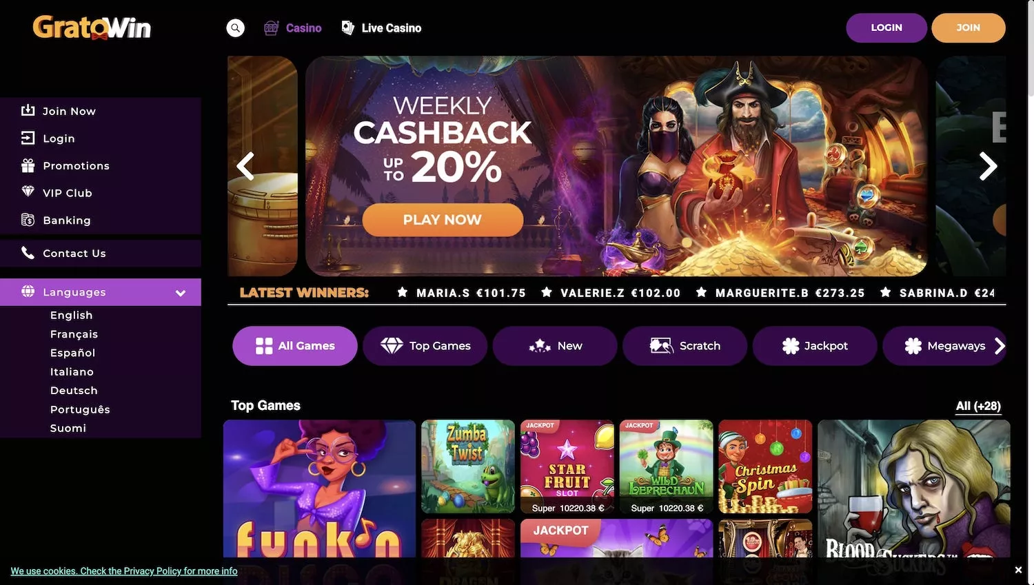 Cotygodniowy cashback i dodatkowe promocje w Casino Gratowin