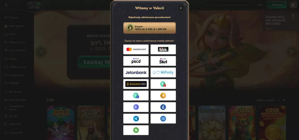 Kasyno Herospin oferuje polskim graczom szeroki wachlarz metod płatności, umożliwiając wygodne i szybkie transakcje. Dostępnych jest 17 metod wpłat oraz 15 opcji wypłat, z przewagą kryptowalut – aż 10 różnych opcji. Co ważne, wypłaty w kasynie Herospin są dostępne dopiero po dokonaniu depozytu.