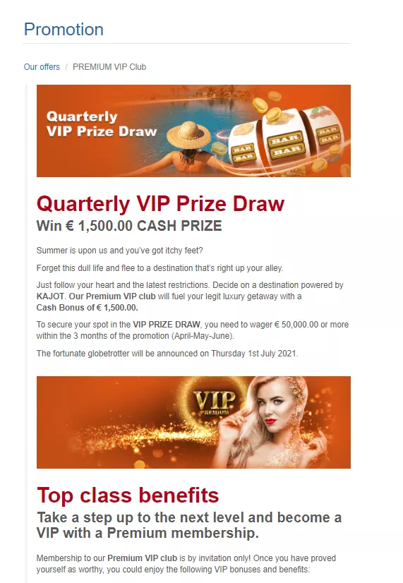Zostać członkiem Klubu VIP-ów kasyna można zostać wyłącznie po zaproszeniu. Bonus powitalny dla VIP-ów to 200 EUR. Razem z tym, gracze VIP dostają zwrot gotówki 10% od spędzonych pieniędzy w miesiącu poprzednim.