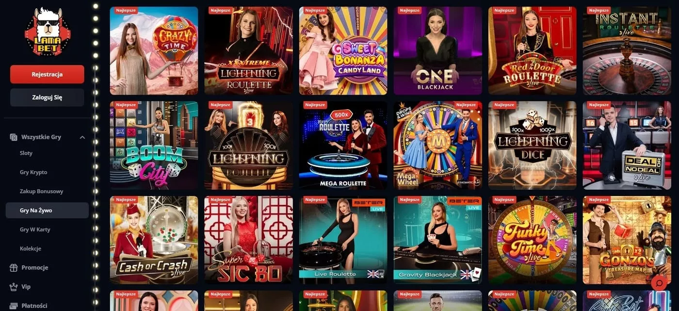 W kasyno Lamabet gra online może wkraczać na jeszcze wyższy poziom rozgrywki. Zamiennikiem dla gier stołowych mają być nowoczesne transmisje kasyna live. To specjalne strumieniowe transmisje, które prowadzą reali krupierzy. To odmiany symulujące prawdziwą grę, taką samą, jaka ma miejsce w kasynach naziemnych. Do dyspozycji użytkowników w kasynie LamaBet na żywo są gry: ruletka, poker, karcianki, gry planszowe, gry liczbowe i losowania (teleturnieje).