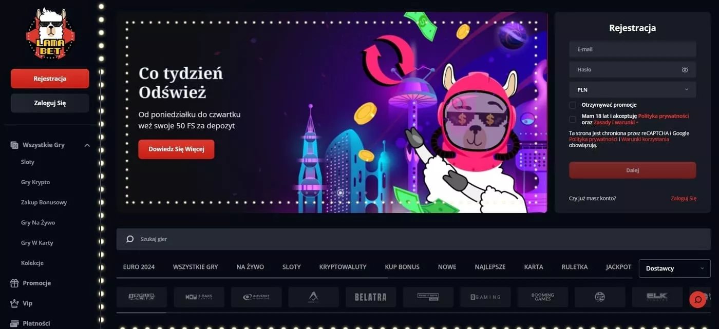 Cotygodniowy bonus od wpłaty z nagrodą 50 FS z kodem LAMAWEEK