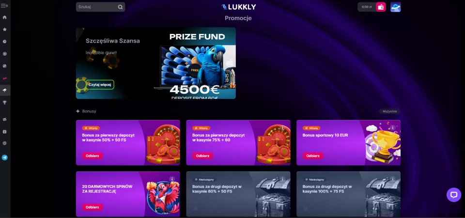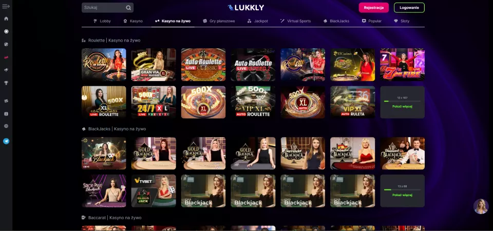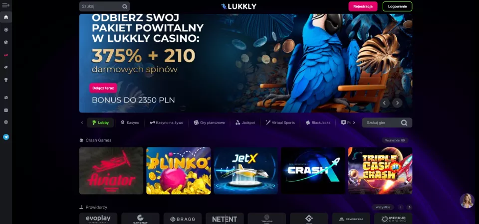 Lukkly to platforma dostępna w ponad 20 językach, w tym w języku polskim, co czyni ją wygodną dla użytkowników z różnych krajów. Nowi gracze mogą skorzystać z atrakcyjnego bonusu w postaci 20 darmowych spinów za samą rejestrację konta, a cotygodniowe turnieje przyciągają fanów rywalizacji. Kasyno zapewnia szeroką gamę metod płatności dostosowanych do polskich graczy i liczne promocje. Poniższa recenzja kasyna Lukkly szczegółowo omawia kluczowe cechy tej platformy hazardowej.
