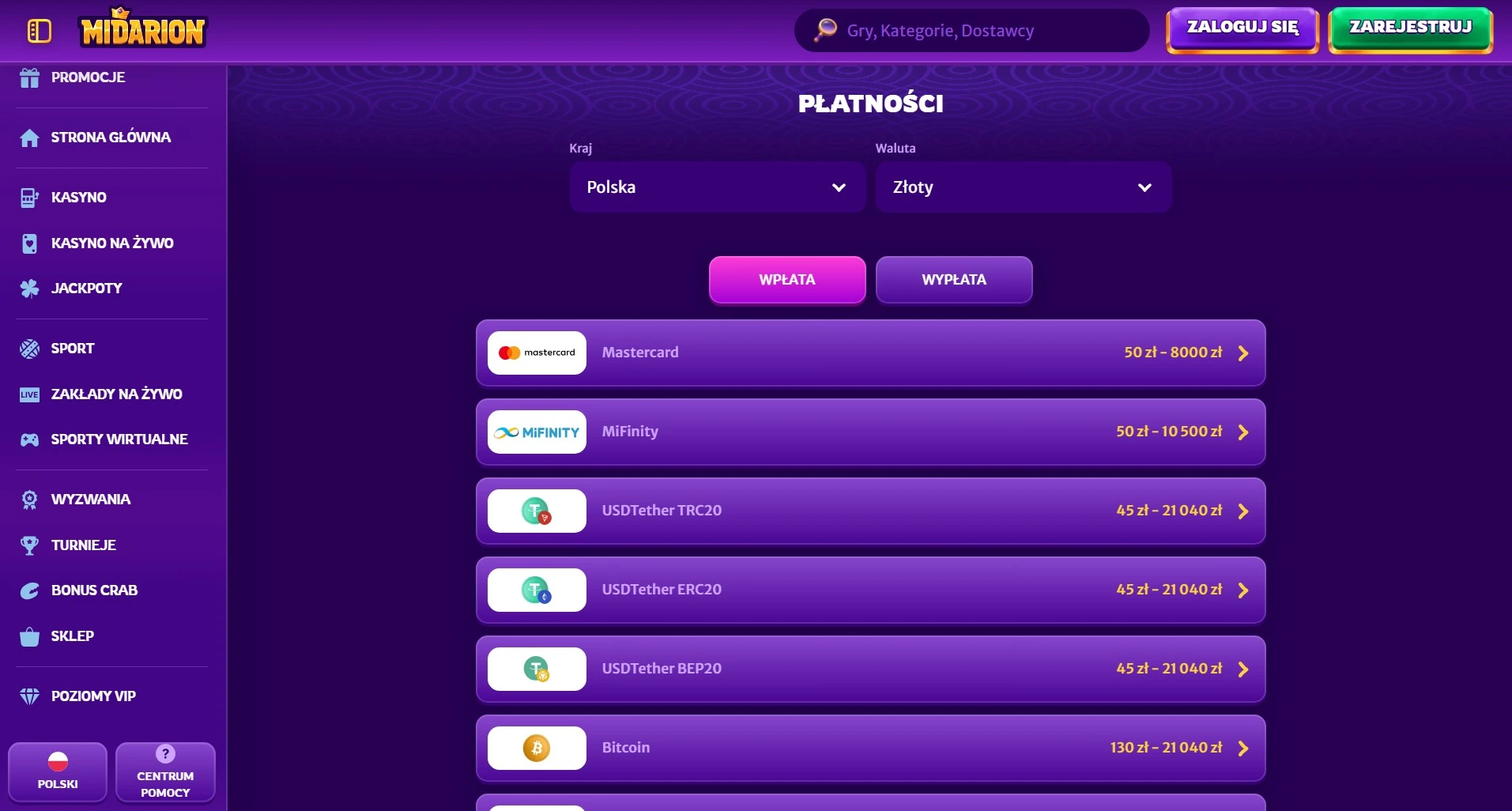 Kasyno Midarion zapewnia szeroki wybór metod płatności, co ułatwia zarówno wpłaty, jak i wypłaty środków. Przeanalizowaliśmy dostępne opcje pod kątem wygody polskich graczy.