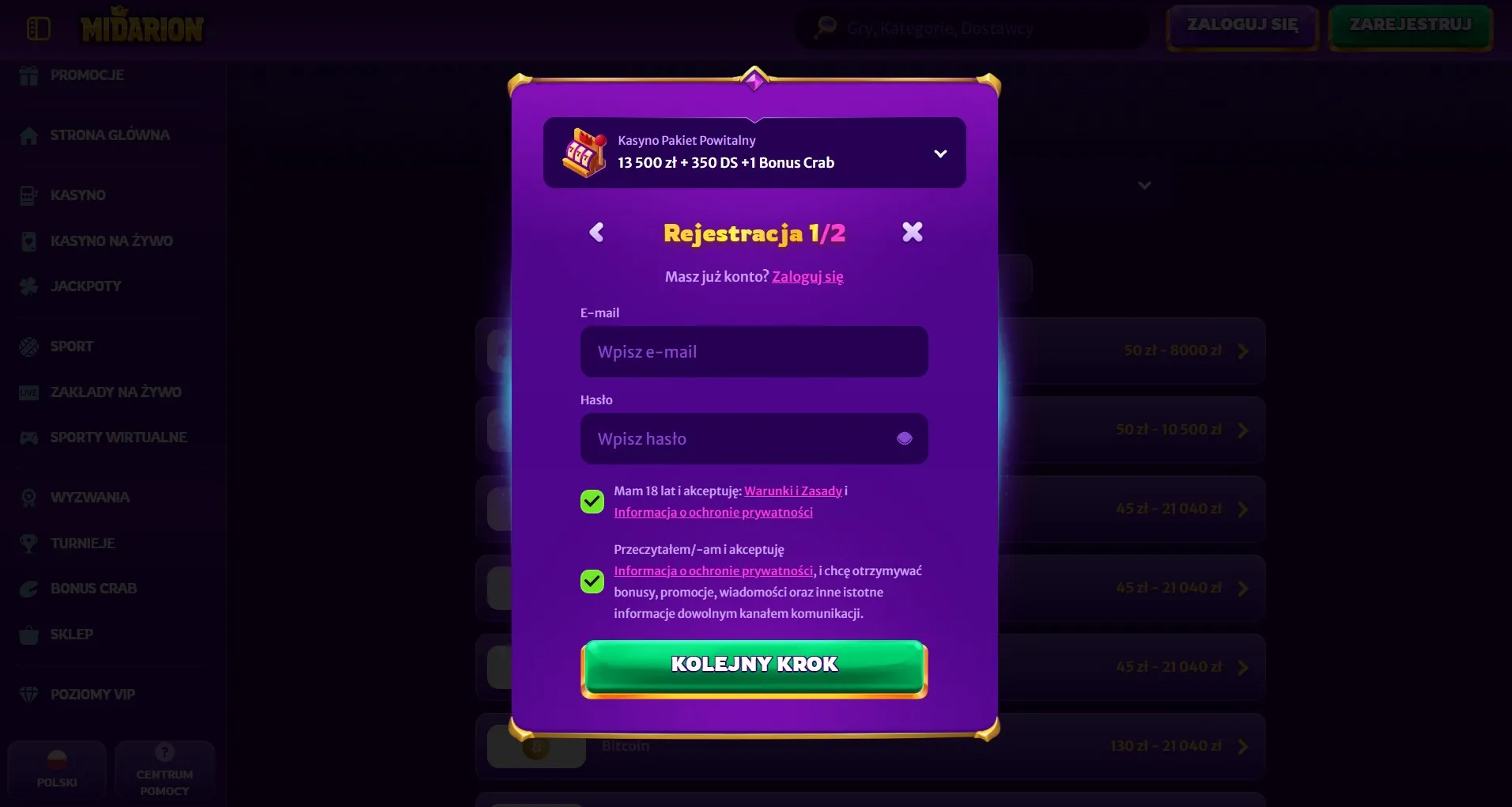 Jak zalogować się do kasyna Midarion?