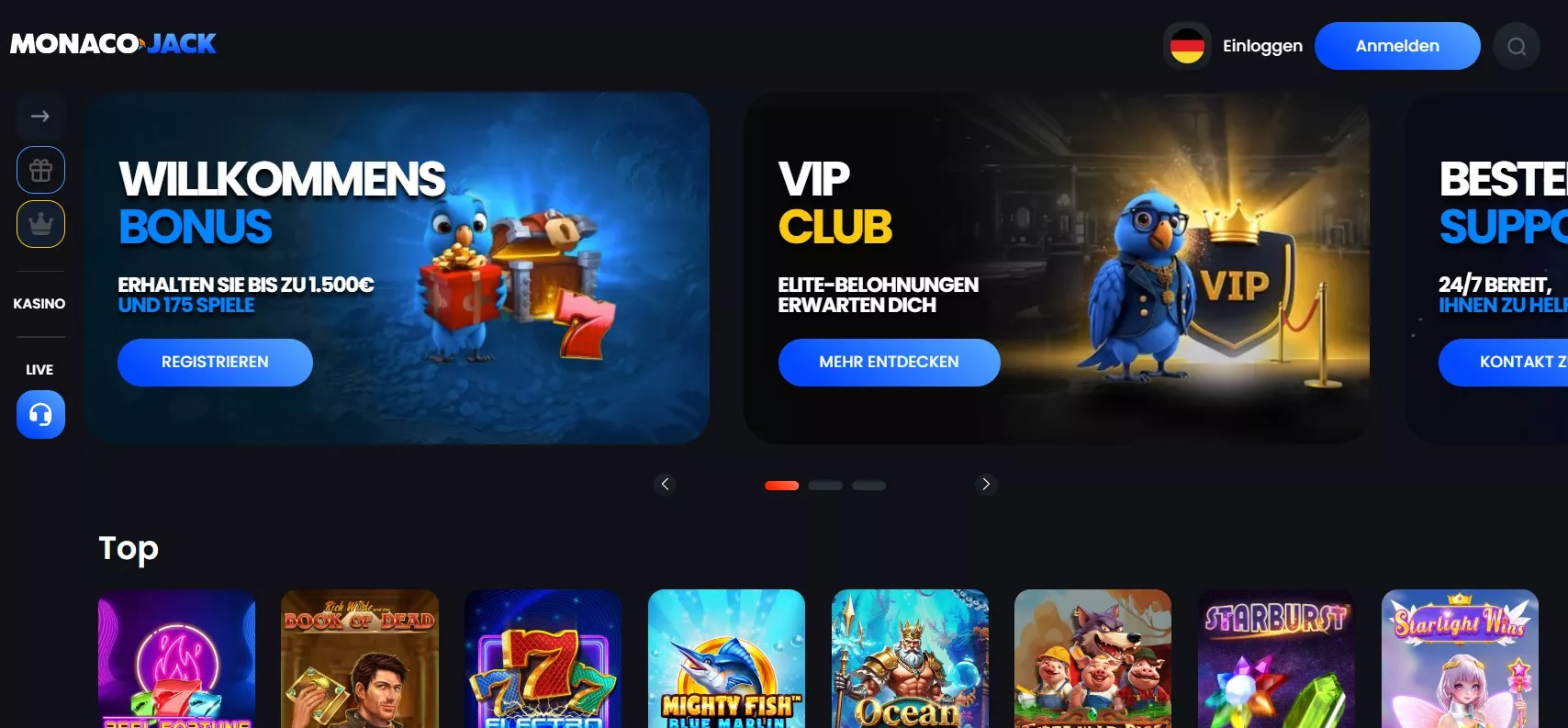 Większość tytułów można testować w wersji demo – bez rejestracji i ryzyka utraty środków. W ten sposób MonacoJack dla graczy z Polski pozwala sprawdzić mechanikę gier, poznać funkcje bonusowe i dopasować strategie jeszcze przed grą na realne pieniądze.