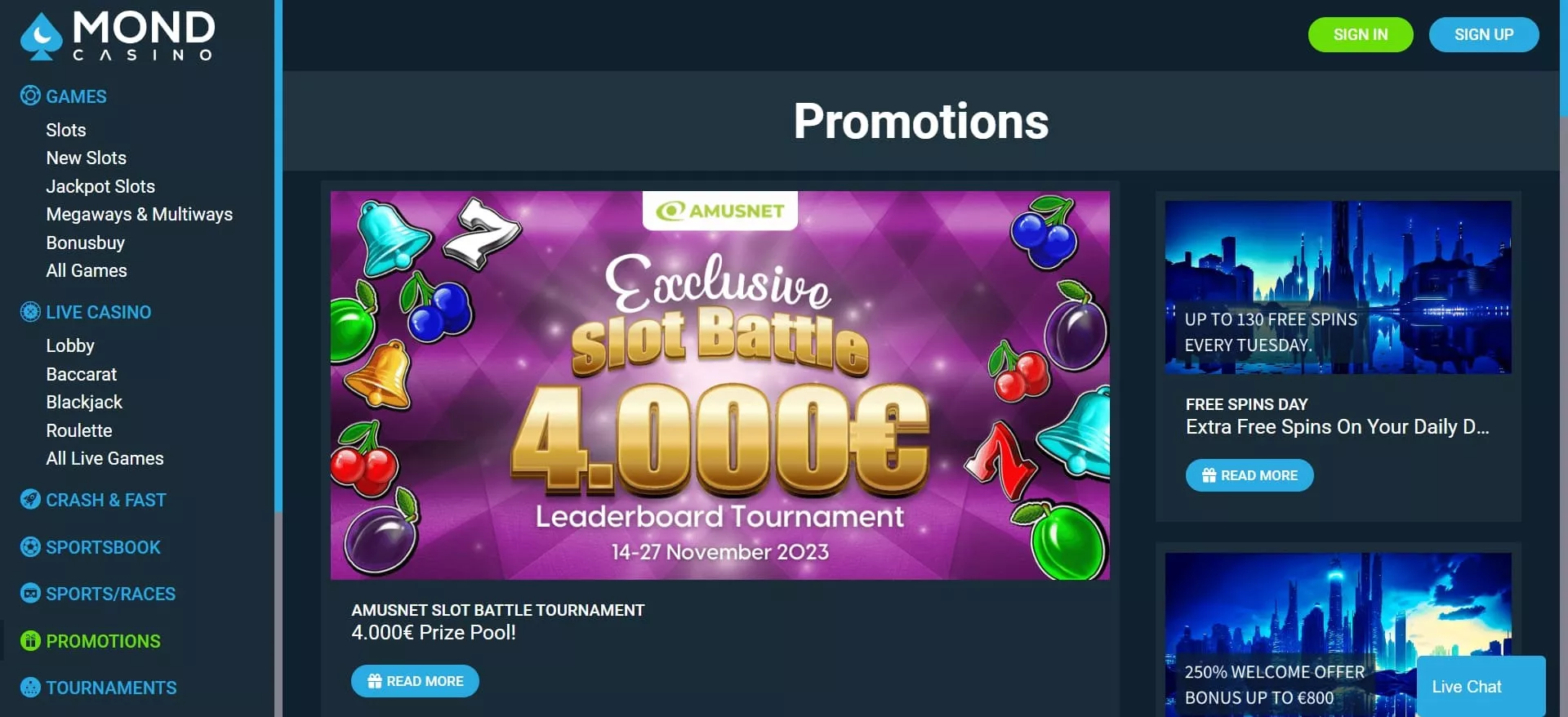 Promocje w kasynie na żywo