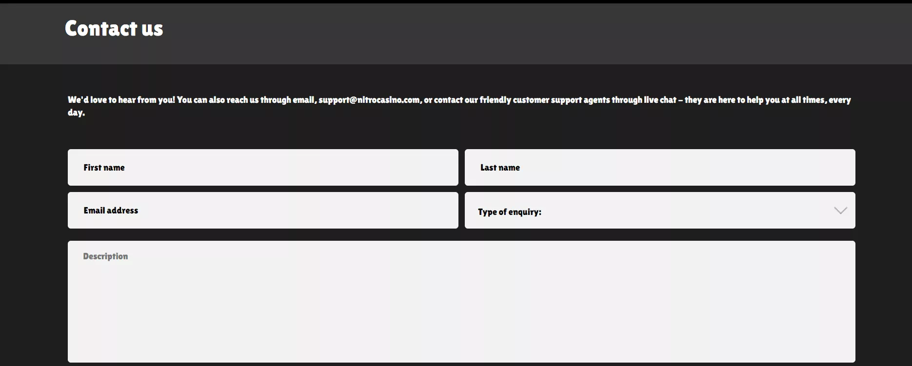 E-mail: support@nitrocasino.com