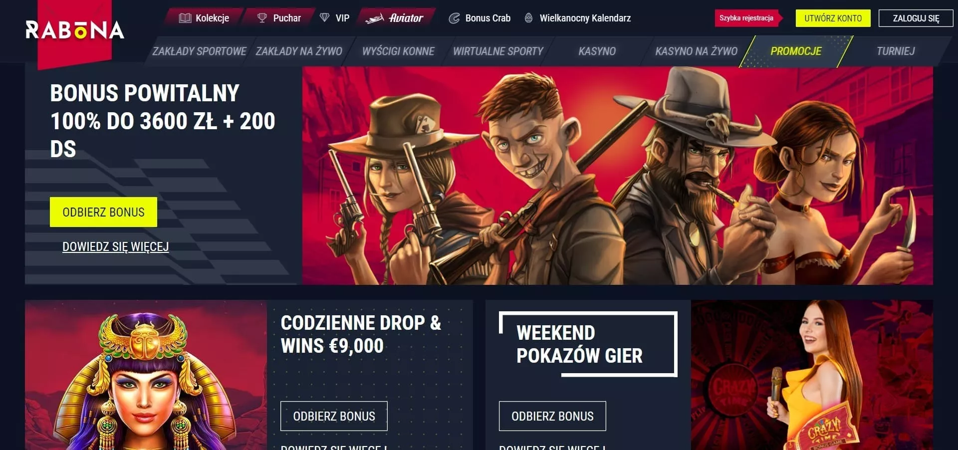 Drugą opcją bonusu powitalnego jest otrzymanie go w zakładach bukmacherskich Rabona, a wysokość tej premii wynosi 500 złotych.