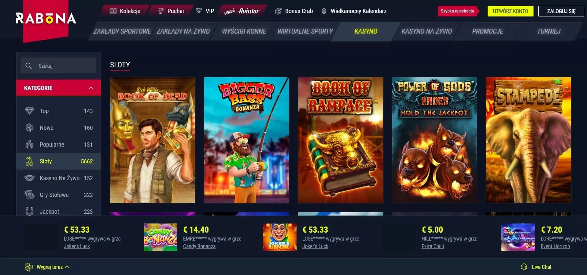 Poniżej prezentujemy Rabona Casino najlepsze gry, które są najpopularniejsze wśród graczy: