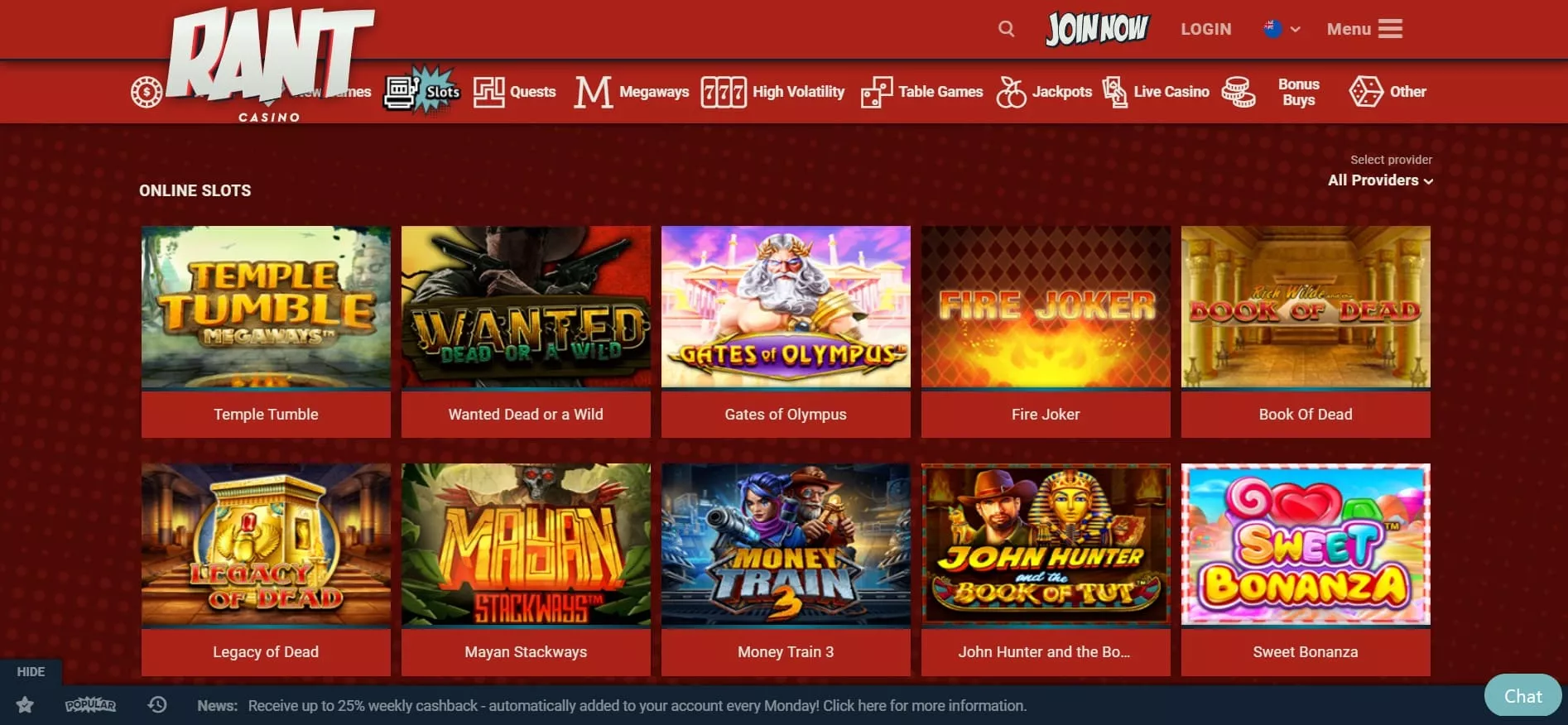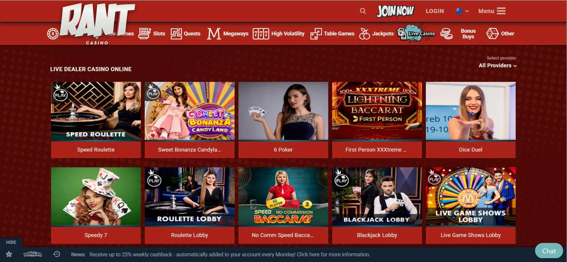 Kasyno Rant gra online obejmuje ponad 3000 tysiące propozycji od uznanych firm zapewniających oprogramowanie. Gra jest tutaj możliwa z następującymi gatunkami: