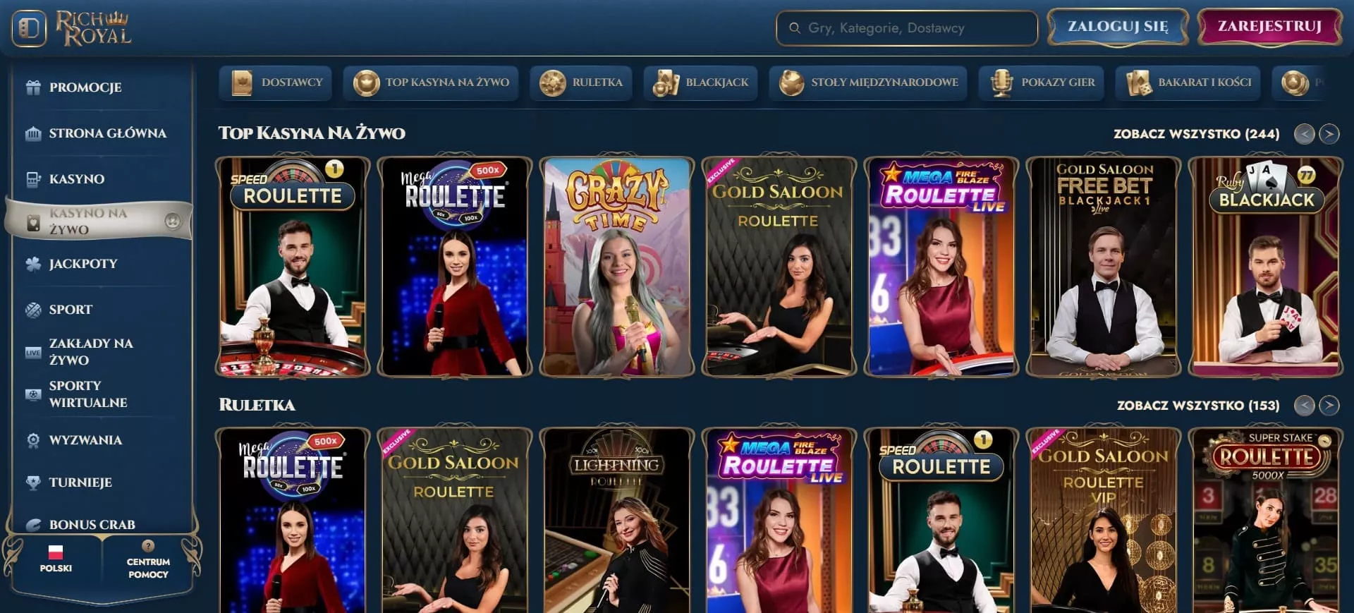 Kasyno online posiada w swoim asortymencie ponad 10000 gier pochodzących od ponad 90 dostawców. Gry kasynowe Richroyal obejmują następujące kategorie: automaty (sloty), gry stołowe, gry na żywo, gry z jackpotami, automaty z mechaniką Megaways, tytuły z funkcją „kup bonus”, błyskawiczne mini-gry oraz klasyczne wersje ruletki i blackjacka.