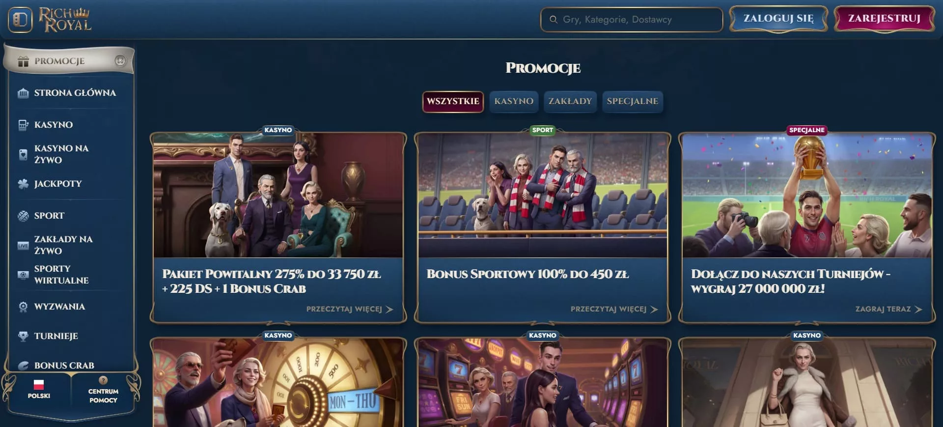 Kasyno wirtualne Richroyal zostało założone w 2025 roku. Gracze mają dostęp do 10000 gier od czołowych dostawców. Do dyspozycji użytkowników jest także 5-poziomowy program VIP z ekskluzywnymi korzyściami. Operator oferuje 2 rodzaje cashbacku: w grach na żywo i cotygodniowy. Organizowane są turnieje z pulą nagród sięgającą nawet 2 000 000 EUR. W asortymencie znajdują się gry z wieloma kategoriami jackpotów. Powyższa recenzja kasyna Richroyal dla polskich graczy w 2025 roku przedstawia najważniejsze atuty tej platformy hazardowej.