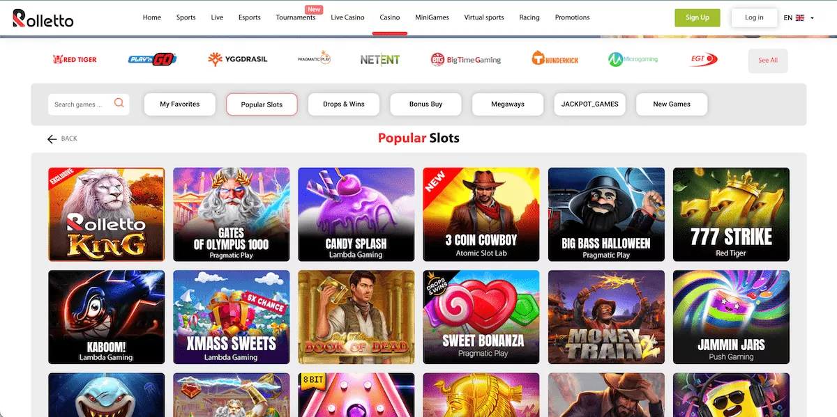 W ofercie Rolleto Casino znajdziesz gry kasynowe od 90 czołowych dostawców gier i oprogramowań hazardowych online. Najpopularniejsze z nich, w tym Rolleto maszyny hazardowe, znajdziesz w poniższej tabeli.