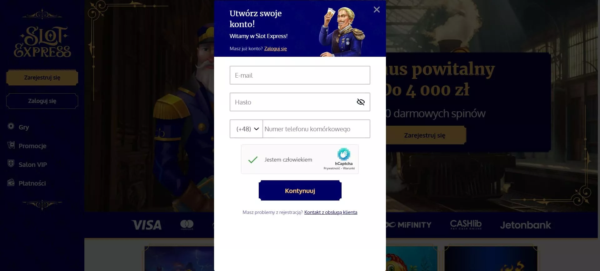 Zalogowanie się do kasyna SlotExpress wymaga kliknięcia przycisku „Zaloguj się” w lewym górnym rogu strony. Następnie należy wprowadzić adres e-mail oraz hasło użyte podczas rejestracji.