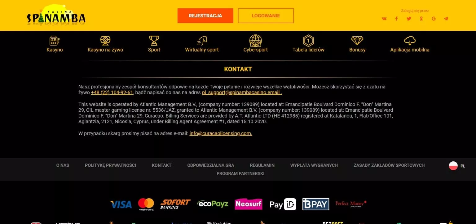 Spinamba Kasyno obsługa klienta jest dostępna za pomocą trzech podstawowych kanałów komunikacyjnych, a są to: