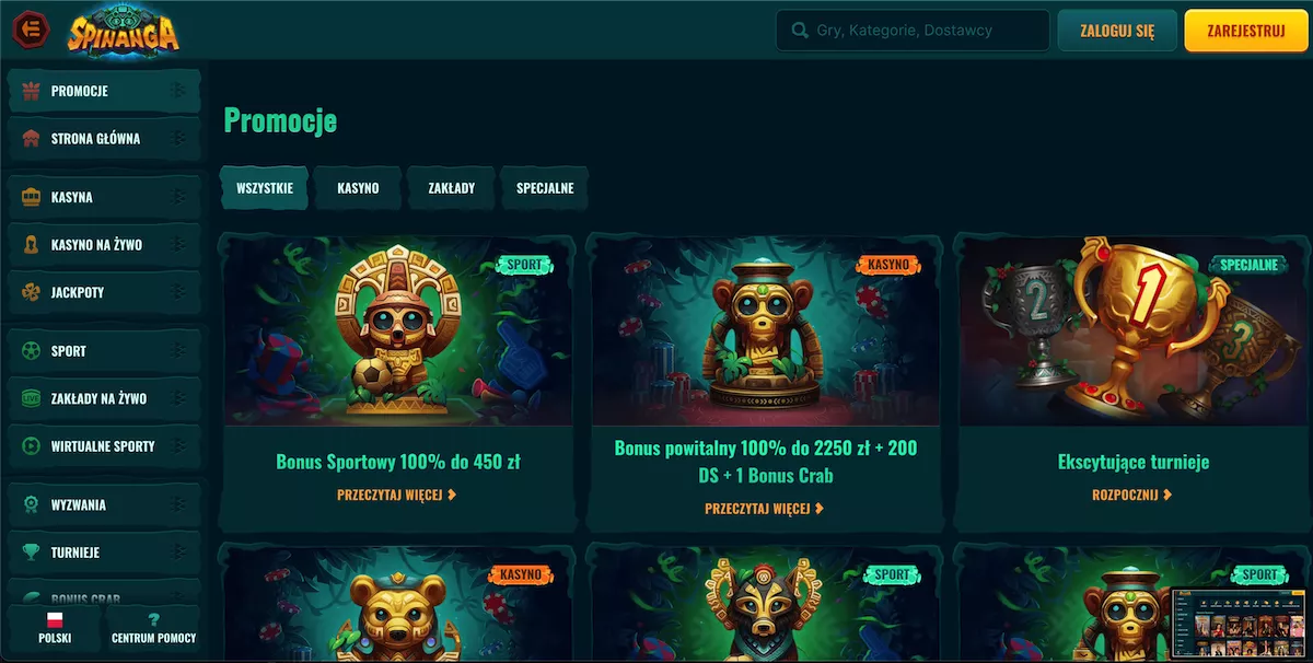 Spinanga to miejsce, które z pewnością zadowoli zarówno nowicjuszy, jak i doświadczonych graczy, dzięki swojej obszernej ofercie gier. Katalog gier w Spinanga Casino jest bowiem niezwykle bogaty i różnorodny, obejmując zarówno gry kasynowe, jak i zakłady sportowe, co czyni go atrakcyjnym wyborem dla szerokiego spektrum graczy.
