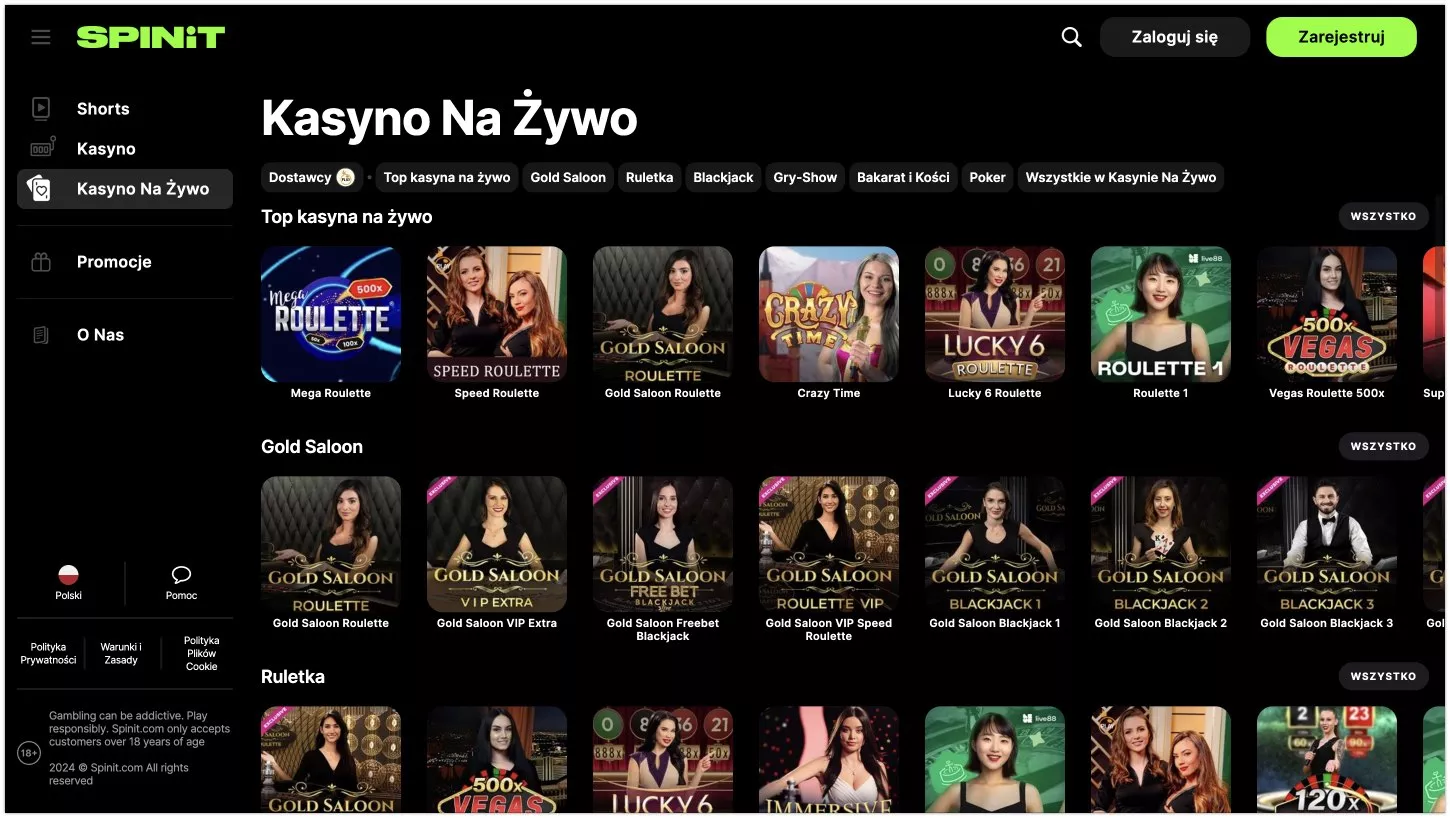 Czy wszystkie gry w kasynie Spinit są dostępne w Polsce?