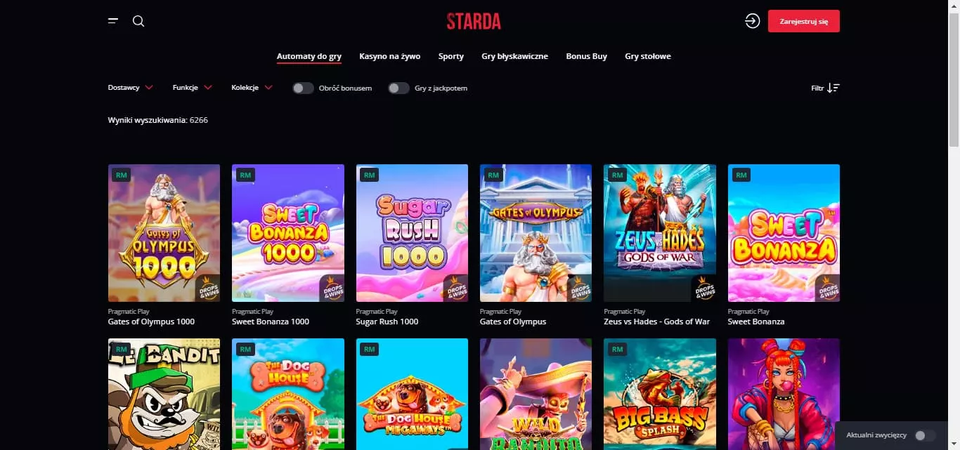 Wygodnie można znaleźć grę według nazwy w zakładce wyszukiwania lub przez dostawców. Ponadto, dzięki tak licznej bibliotece gier, każdy gracz z pewnością znajdzie tu swoją ulubioną grę, a dzięki Starda szybkie wypłaty, dokona przelewu wygranych środków pieniężnych w bardzo krótkim czasie.