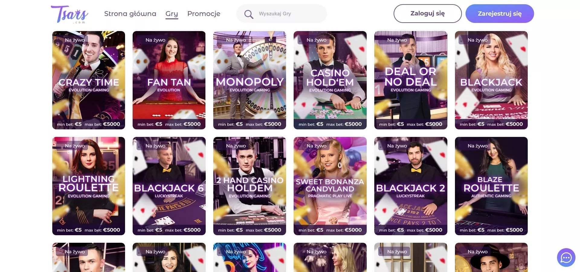 Największą popularnością cieszą się tu takie gry na slotach jak Cluster Tumble, Tropicool, Midas Golden Touch, Das Xboot czy Legacy of Dead. Do grania w gry nie potrzebny jest żaden Tsars Casino promo code. Niestety, ale gracze muszą wpłacić minimalny depozyt, ponieważ nie ma tu darmowych gier Tsars Casino.