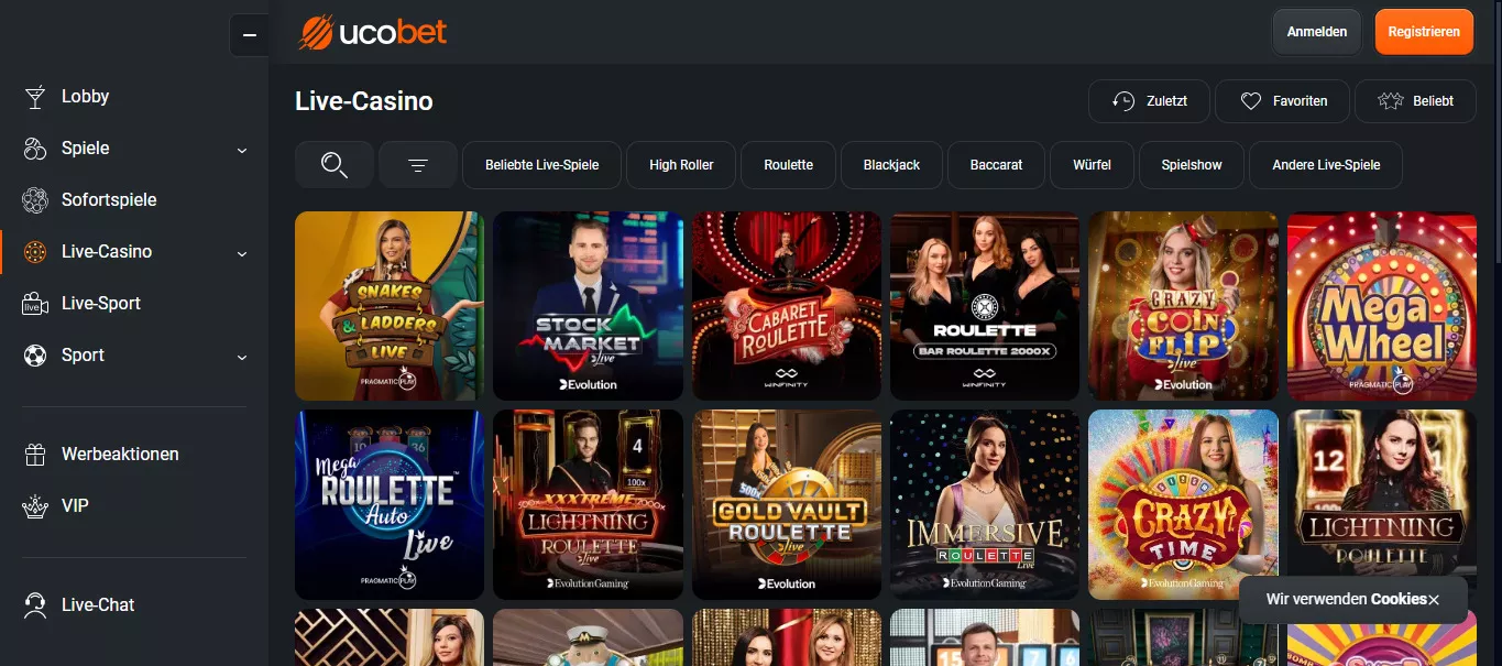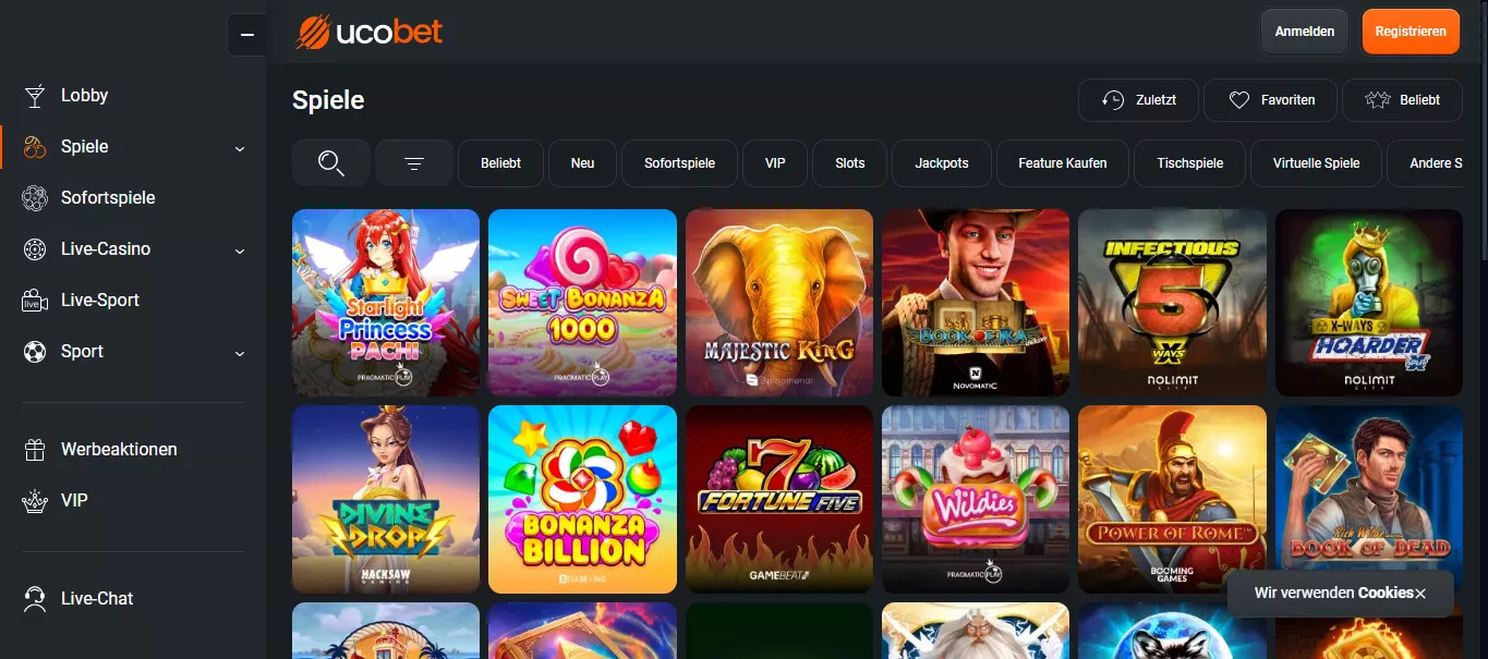W lobby czeka na graczy ponad 6 000 gier hazardowych na czele z automatami do gry UcoBet kasyno na pieniądze. Wśród producentów znajdziemy takie studia jak Amatic, Big Time Gaming, Mascot, Play’n GO czy Nolimit City. Ofertę tego kasyna online uzupełniają gry z prawdziwym krupierem oraz masa gier stołowych w tym blackjack, ruletka, bakarat czy kości.