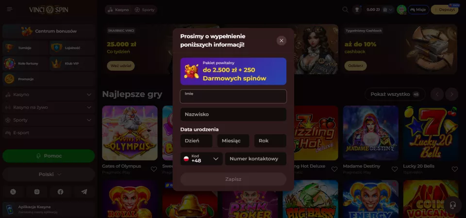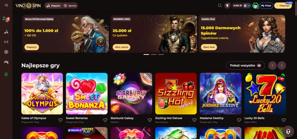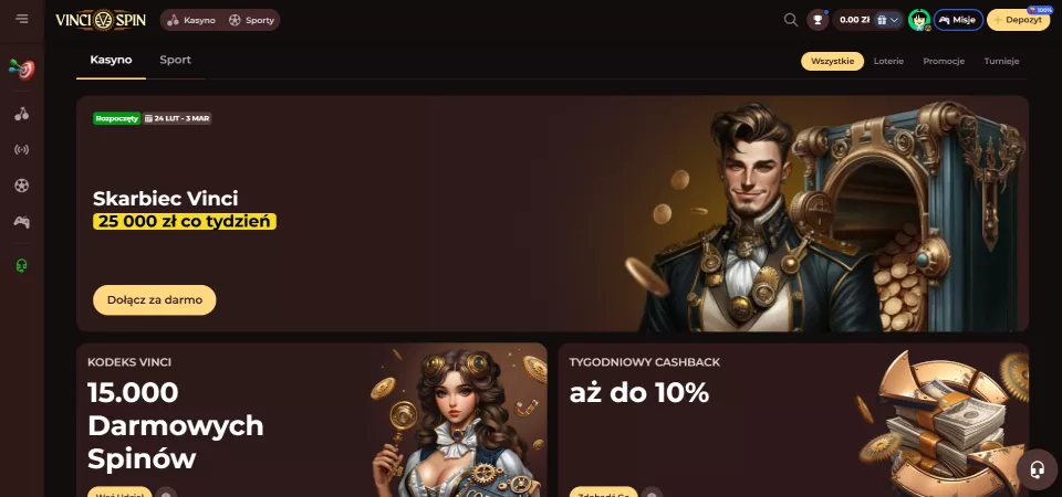 W tej recenzji przyjrzymy się bliżej witrynie hazardowej VinciSpin. To kasyno zostało założone w 2025 roku, więc jest to dość świeża marka, która jest dostępna na rynku polskim.