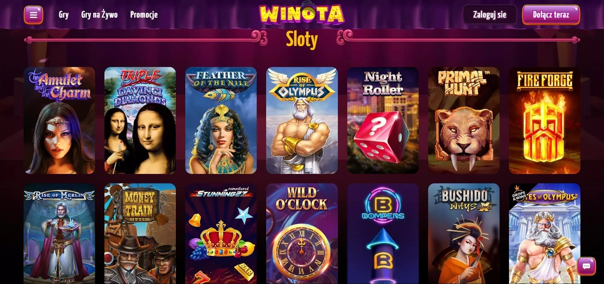 Jeśli chodzi o ofertę Winota casino gry, to ich biblioteka liczy sobie ponad 2000 różnych gier hazardowych online, więc klienci mają w czym wybierać.
