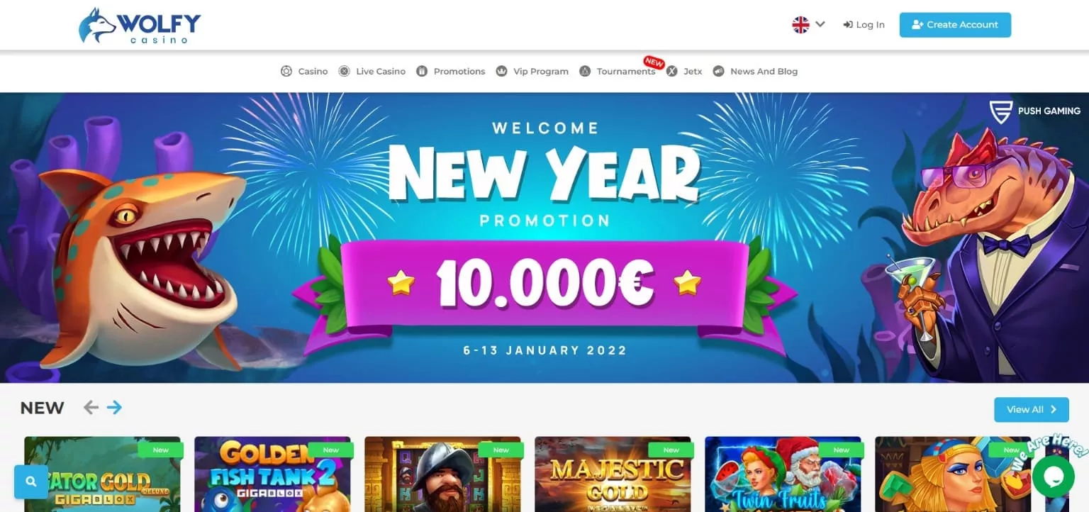 Wolfy Casino online to przyjemna dla oka witryna kasynowa, która zaskakuje jasnymi i nieco pastelowymi kolorami i przemyślanym projektem. Posiada w swojej ofercie wszystko to, czego oczekuje się od nowoczesnego i zaufanego kasyna internetowego – bogatą ofertę gier kasynowych, w tym automatów do gier i gier w kasynie na żywo, przyciągających uwagę promocji, a także licznych turniejów i loterii, które dodają jeszcze więcej emocji do gry.