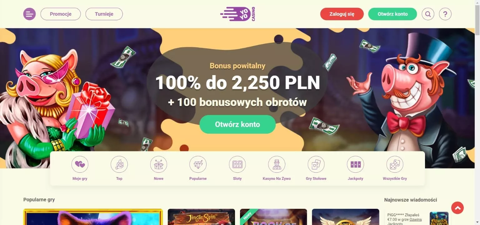 Do wyboru jest bogaty katalog gier, w tym automaty online, gry z jackpotem, kasyno na żywo, gry stołowe i turnieje dla graczy. Początkujący gracze mogą bez ryzyka przetestować wszystkie funkcje kasyna dzięki możliwości gry demonstracyjnej oferowanej przez darmowe Yoyo Casino.