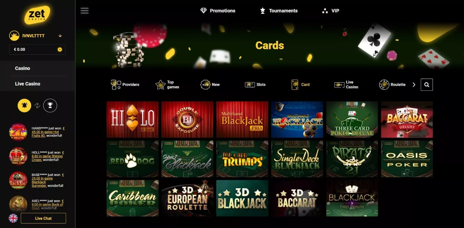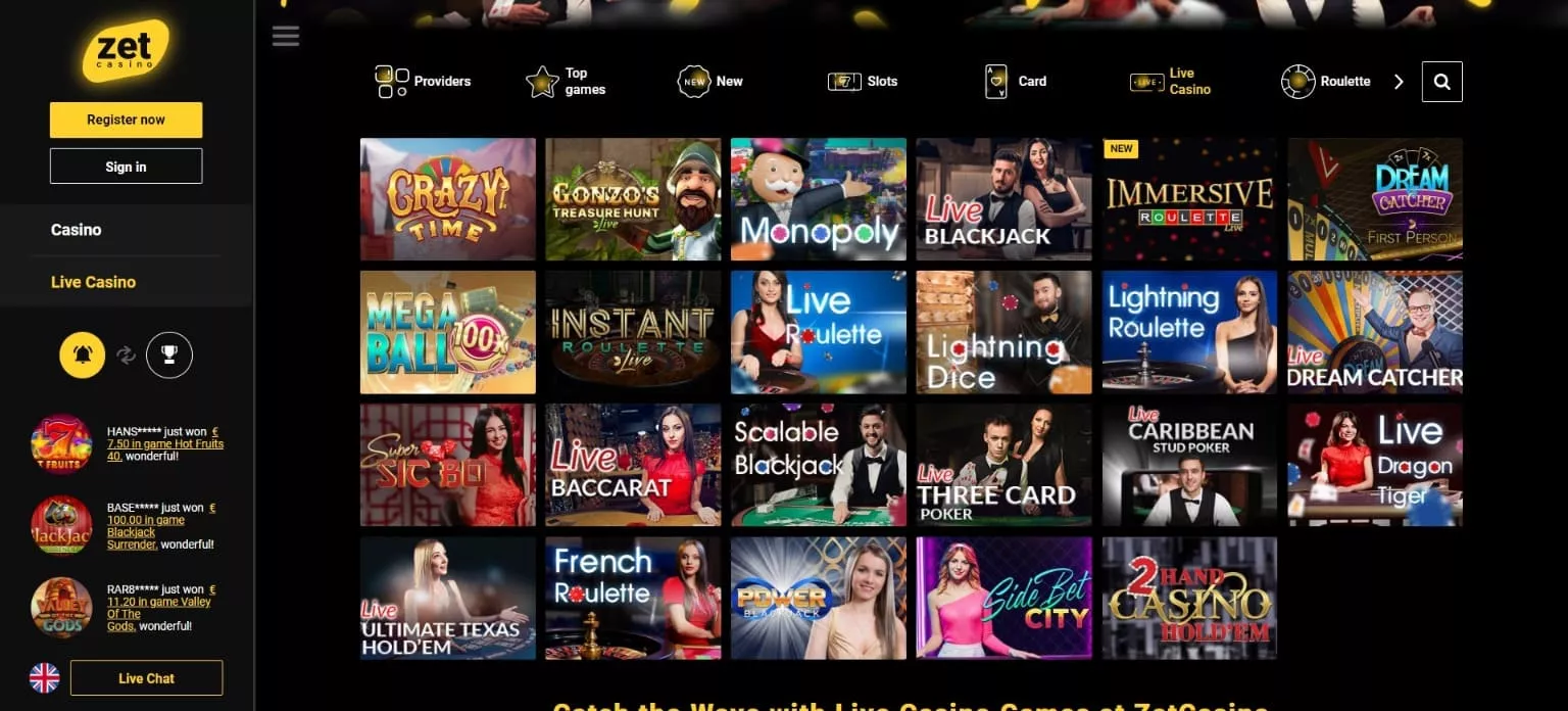 W osobnej kategorii dostępne są gry live z krupierami na żywo, w których prezentowane są ciekawe opcje pokera, ruletki, blackjacka i Baccarat od dwóch dostawców: Evolution Gaming i NetEnt. Te gry są dostępne tylko po zarejestrowaniu się na stronie w ZetCasino rejestracja. Każdy użytkownik ma możliwość poczuć się przy stole pokerowym i pokonać prawdziwego przeciwnika.