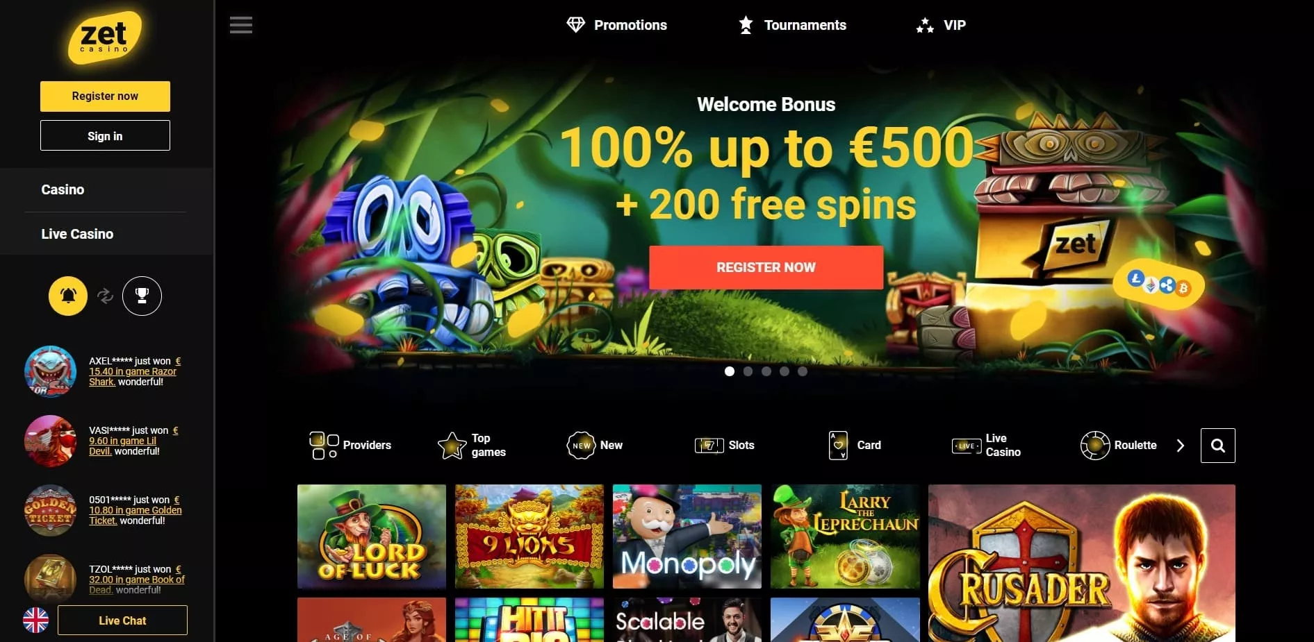 ZetCasino to zupełnie nowe kasyno online, które łączy w sobie najnowsze trendy w hazardzie online. Witryna zawiera dużą liczbę gier o unikalnym designie i wysokiej jakości grafice. Różne bonusy, a także prosty system nawigacji na stronie, który pozwala natychmiast znaleźć ulubioną grę, mile zaskoczy wszystkich graczy. Największą zaletą ZetCasino są szybkie wypłaty i szeroka gama metod płatności. Wpłaty dokonywane za pomocą e-portfeli są natychmiast zaksięgowane na Twoim koncie, jednak wpłaty dokonywane za pomocą karty kredytowej trwają dłużej, ponieważ ich przetworzenie zajmuje więcej czasu. Kasyno oferuje wiele języków i ma własną wersję mobilną.